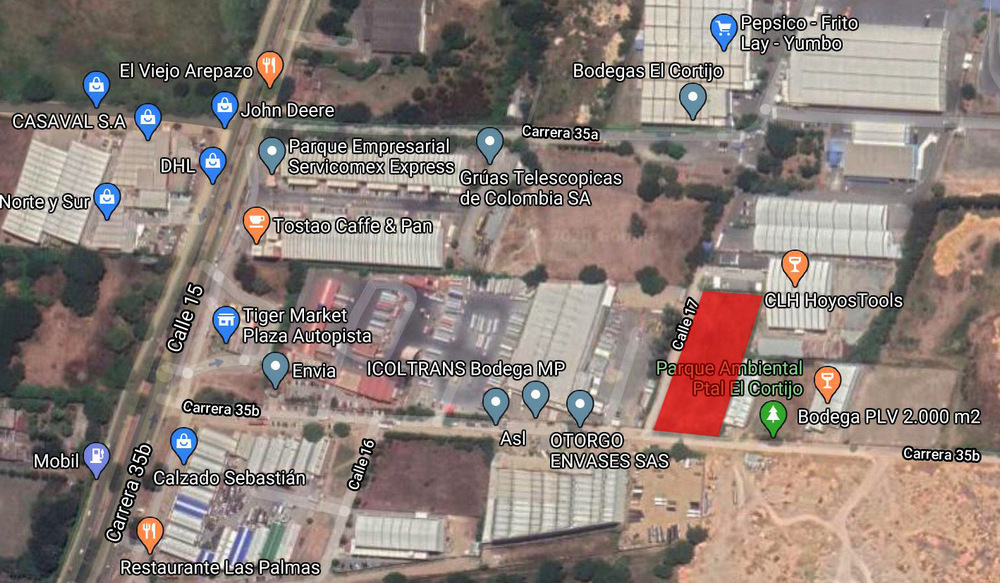 Vecinos: CLH HoyosTools, Otorgo Envases, Bodega PLV, Icoltrans, Pepsi, Bodegas El Cortijo